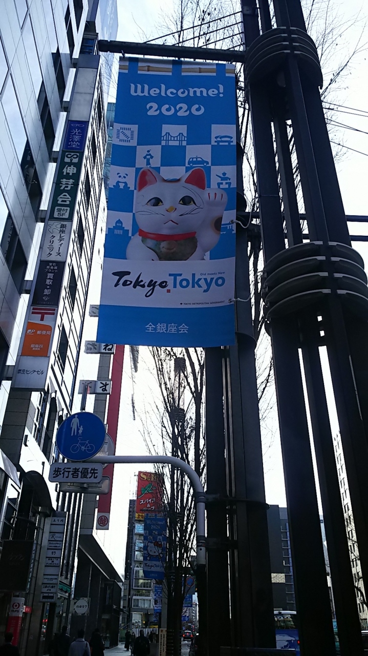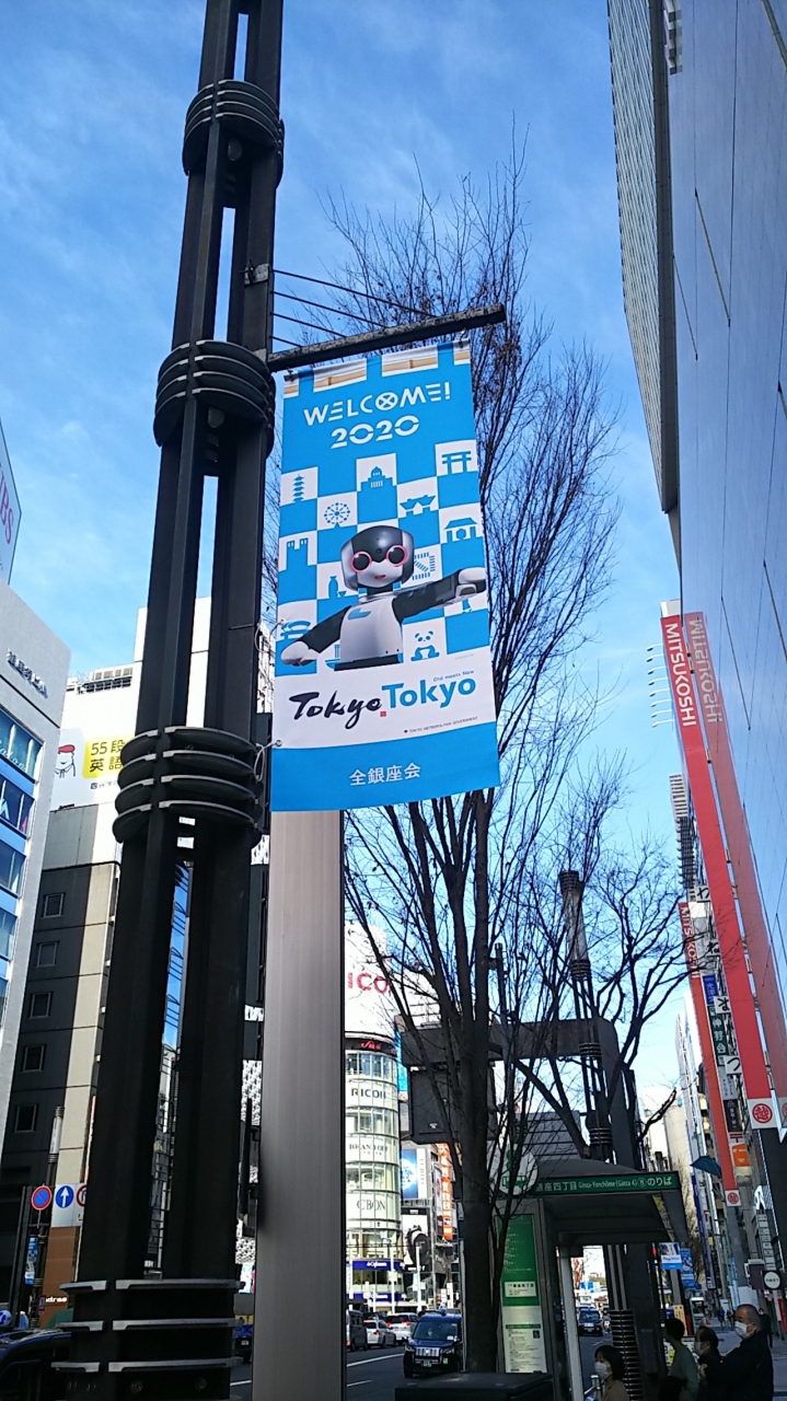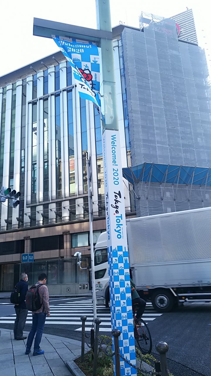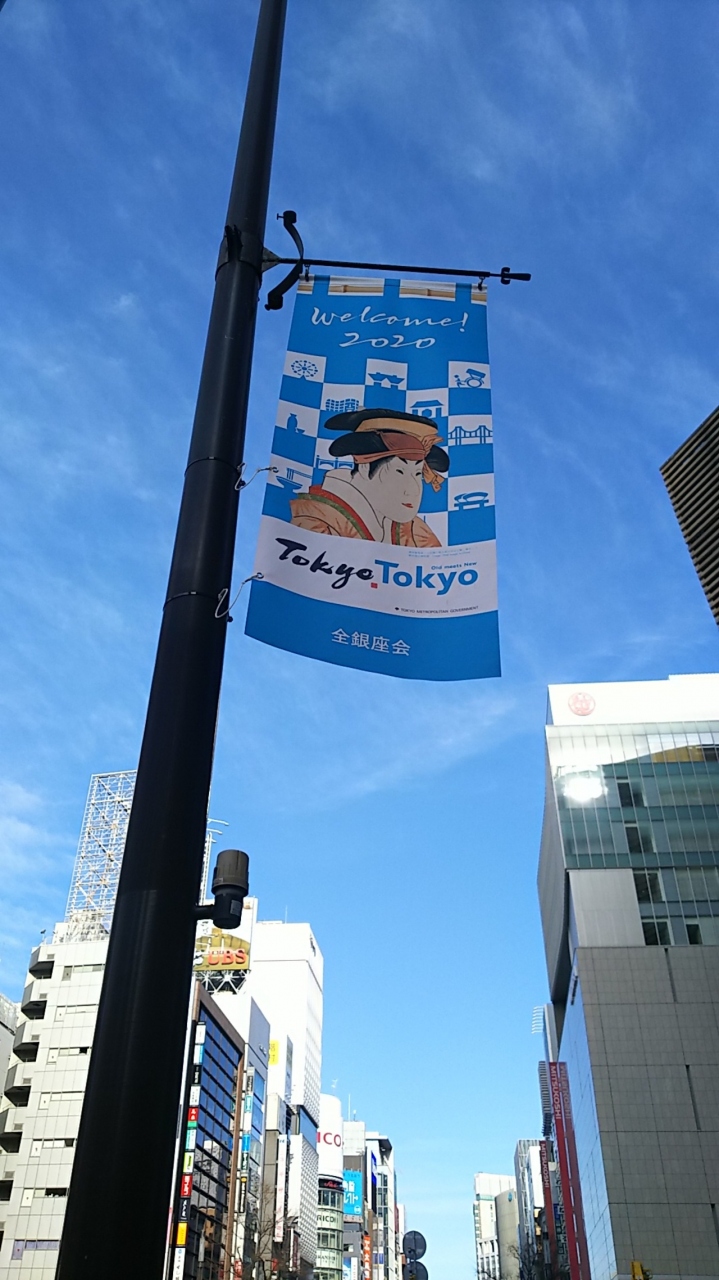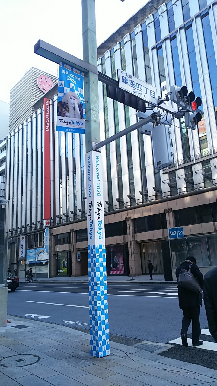 東京マラソン開催翌日には、銀座中央通り付近のバナーがTOKYO2020のバナーに変わっていました(^^)