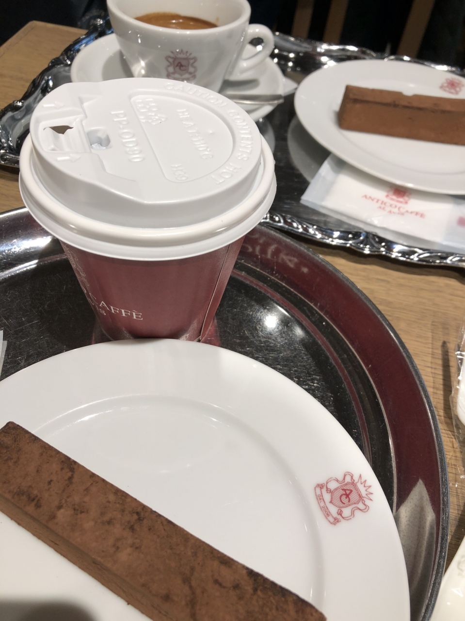 コーヒーには「チョコラータ」…生チョコ・バーのようなスイーツを付けた