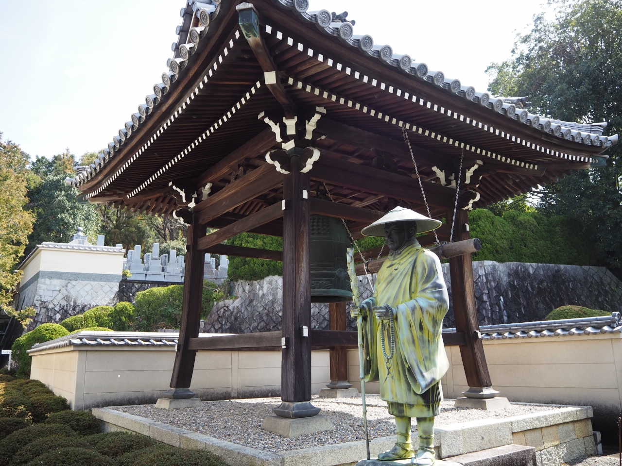 観光客でにぎわう三年坂から石畳のなだらかな坂を上っていきます。参道の入り口では着物姿の観光客が写真を撮っています。坂を登ると、最後は階段になります。その先に本堂があります。しだれ梅もきれいでした。本堂の裏に回ると、親鸞聖人の御廟があります。