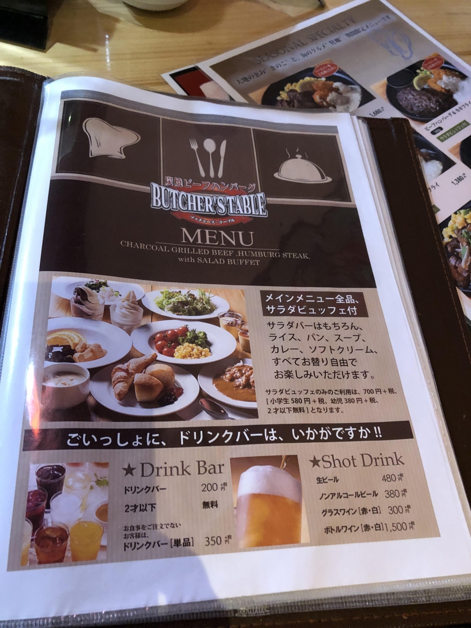 ビーフやハンバーグのたくさんあるメニューの中からメインをひとつ選びます。