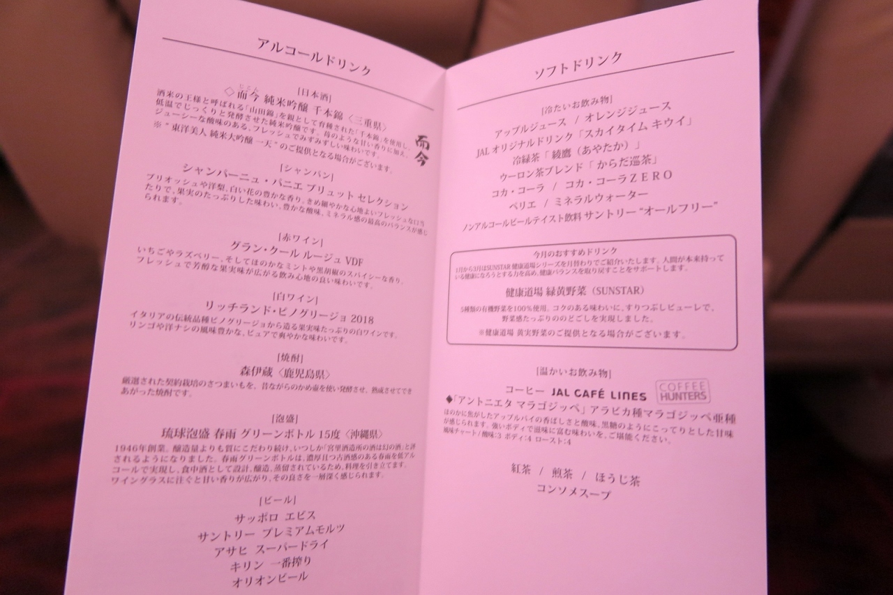 ANAのSFC会員ということもあってJAL国内線に搭乗するのは年に数回ですが、そのときには必ずファーストクラスへの当日アップグレードをねらうことが癖になっています。今回も羽田/新千歳間を特典航空券で発券してあったので、羽田のカウンターで8000円支払って無事にファーストクラスの座席に変更できました。同じように羽田/新千歳間のANA便でプレミアムクラスに変更しようとすると15000円(前日であっても14000円)も必要になります。ファーストクラス搭乗時に利用できるダイアモンドプレミアラウンジのデザイン、革張りのシート、温かい食事など、ANAプレミアムクラスに比べて圧倒的に費用対効果が高いと思います。
