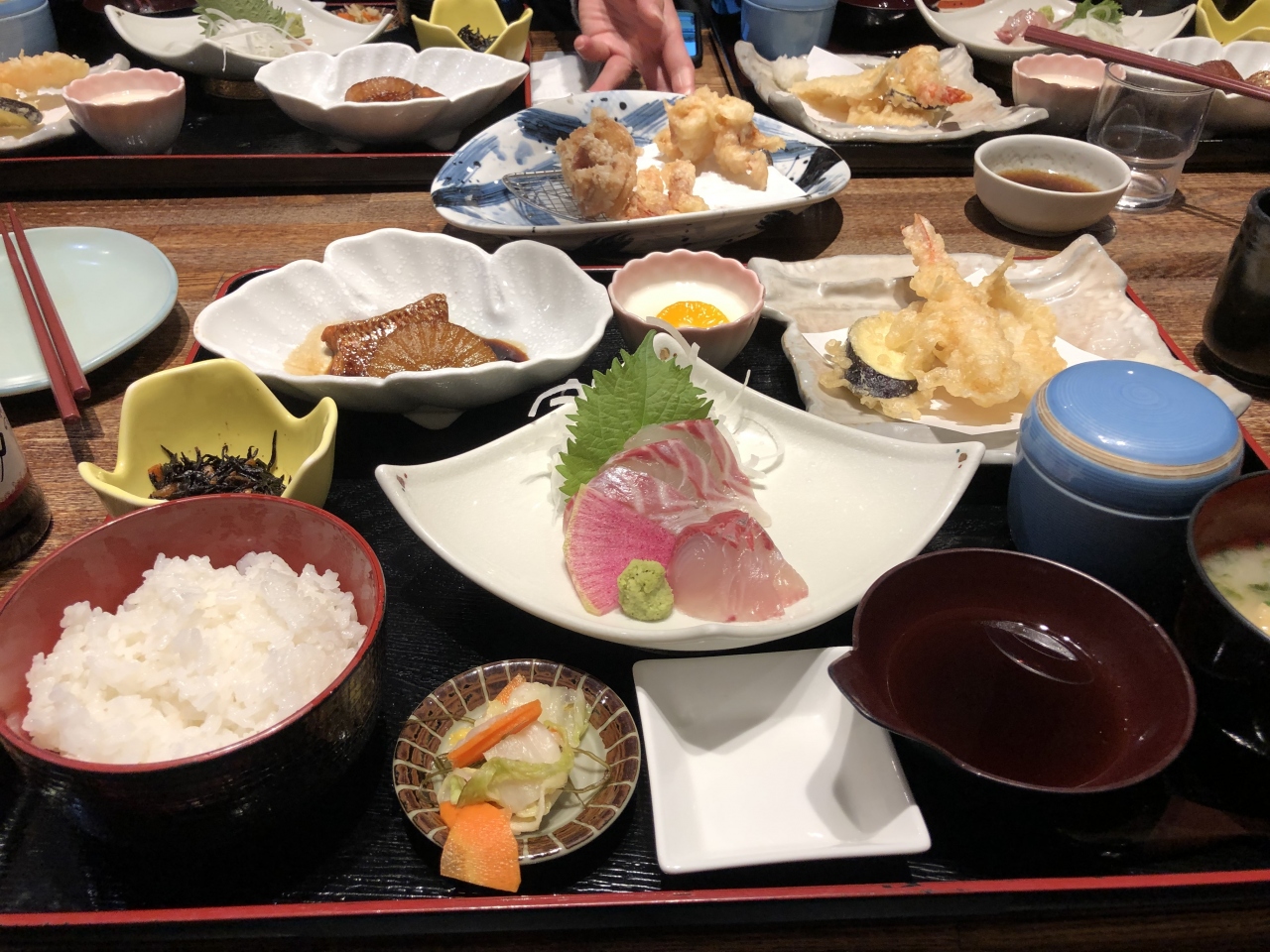 私はお刺身、荒炊き、天ぷらが入っている浜ん小浦定食をいただきました。