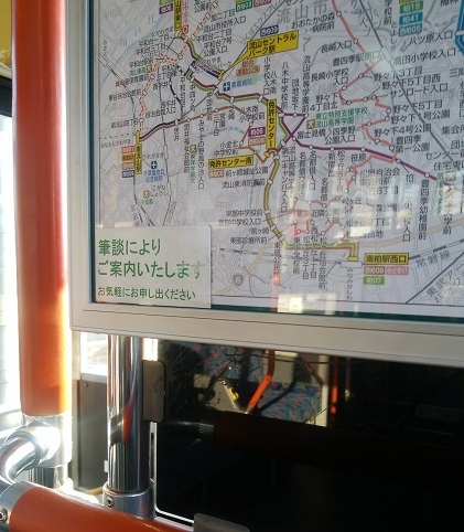 運転席の後ろで路線図を眺めながらの乗車、柏市から流山市や野田市の方まで網羅しているようでした。