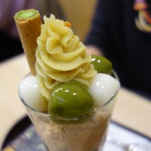 パフェのオーダーメードが出来ます。パフェは8段になっていて,その各段に何を入れるかメニューから選びます。まあ,自分好みのパフェが作れることになります。アイデアですね。パフェ以外にもどれもおいしい。オススメのお店です。以前は階段のしたまで列が出来ていましたが,さすが,昨今は並ばなくても入れます。喜んだらいいのか。。。