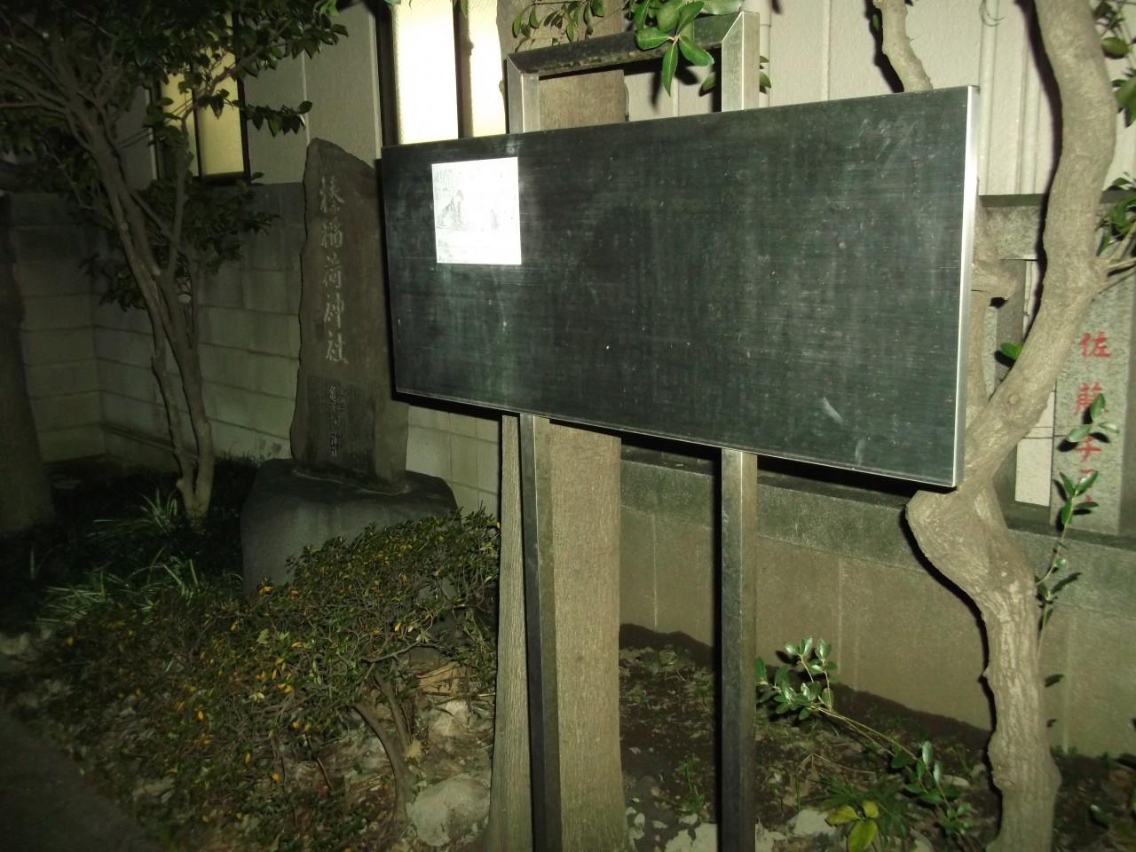 大江戸線両国駅を出てすぐ、清澄通りから一本入ったところにある榛稲荷神社の中に葛飾北斎住居跡の説明板が立っていました。北斎は生涯で90回以上引っ越しをしたようですが、このあたりは生誕の地とも近く住み慣れたところなので、著名な作品もここでずいぶん作られたことでしょう。今は小さな神社の境内の中で、過去の姿をとどめるものはありません。