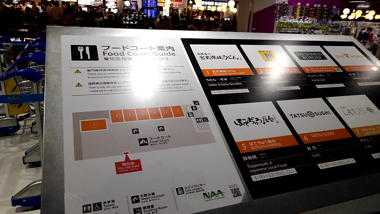 成田空港第3ターミナル2階のフードコートは店舗数は7店舗しかないのですが、いつも利用客がいてにぎわっているので、とても充実している印象です。平日でもお昼時は席を確保するのに、探さないといけない様子はさながら、田舎のイオンショッピングセンターのフードコートのような感じです。あと、こちらのフードコートは7店舗中、6店舗が朝4時!から営業しています。!!(⊃ Д)⊃≡゚ ゚