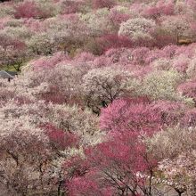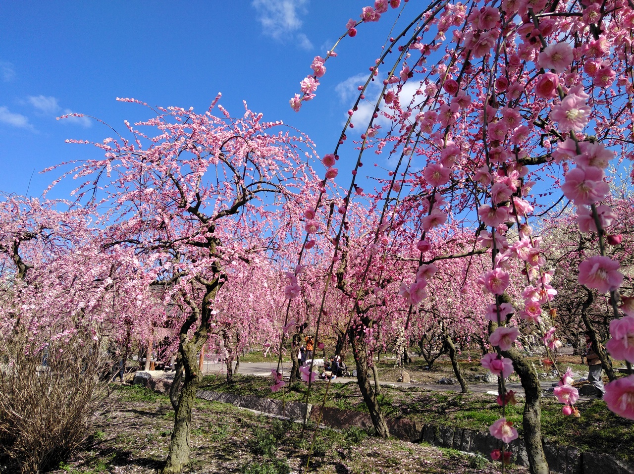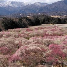 広大な敷地一面に梅の花が咲き誇り春爛漫。