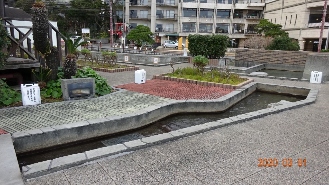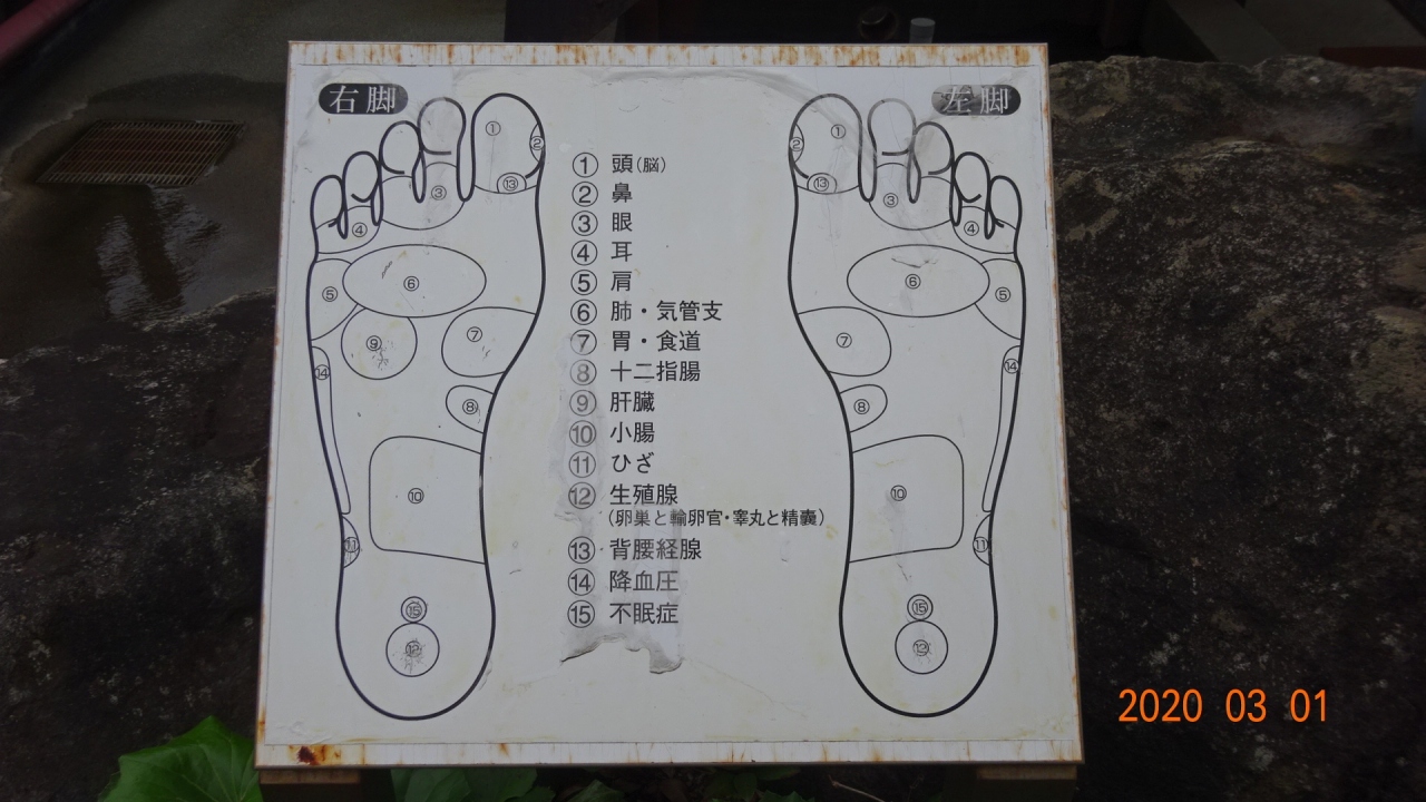 足つぼを刺激するデコボコ道や足湯スポットがあります。