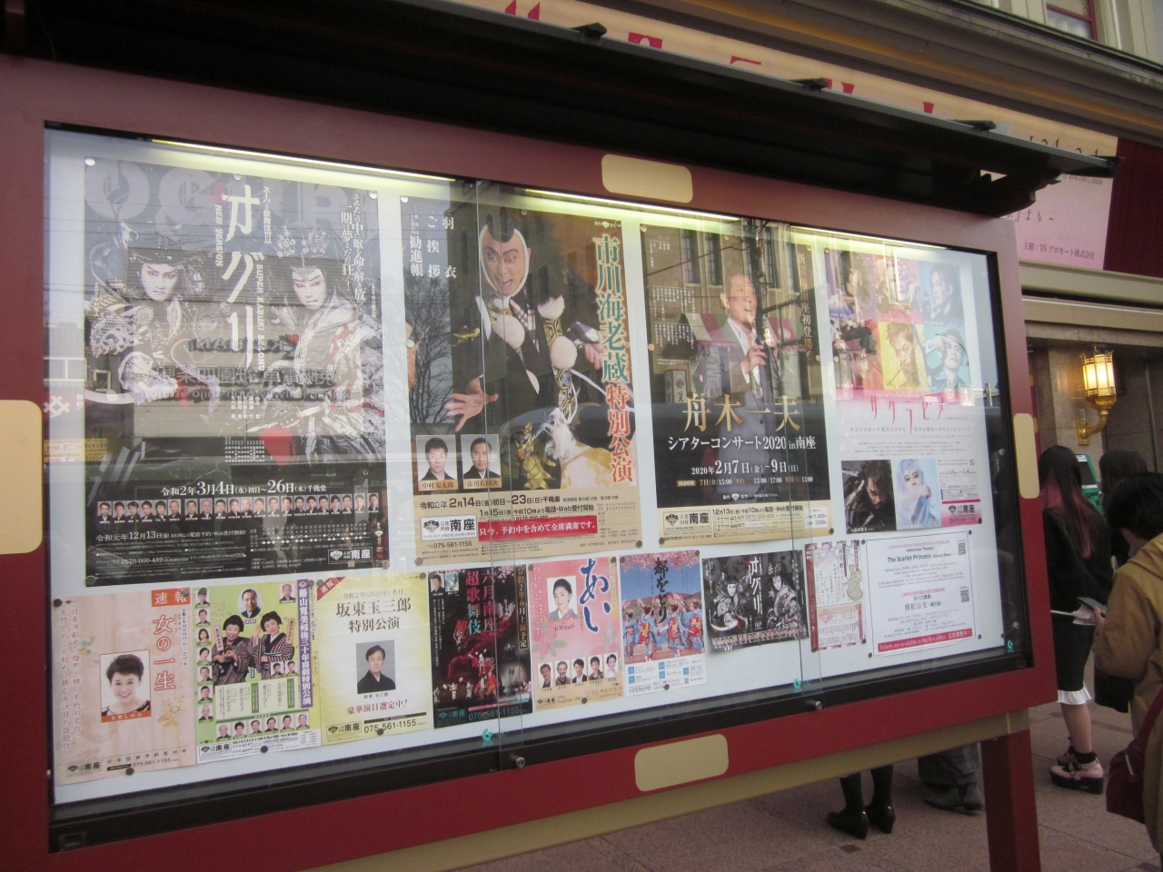 途中に、京都四條 南座があります。四条大橋のすぐ横ですね。公開案内を見ていると、市川海老蔵さんの公演もあるようでした。歌舞伎は、外国人にも人気で、京都四條 南座にも、沢山の外国人の方が居ました。