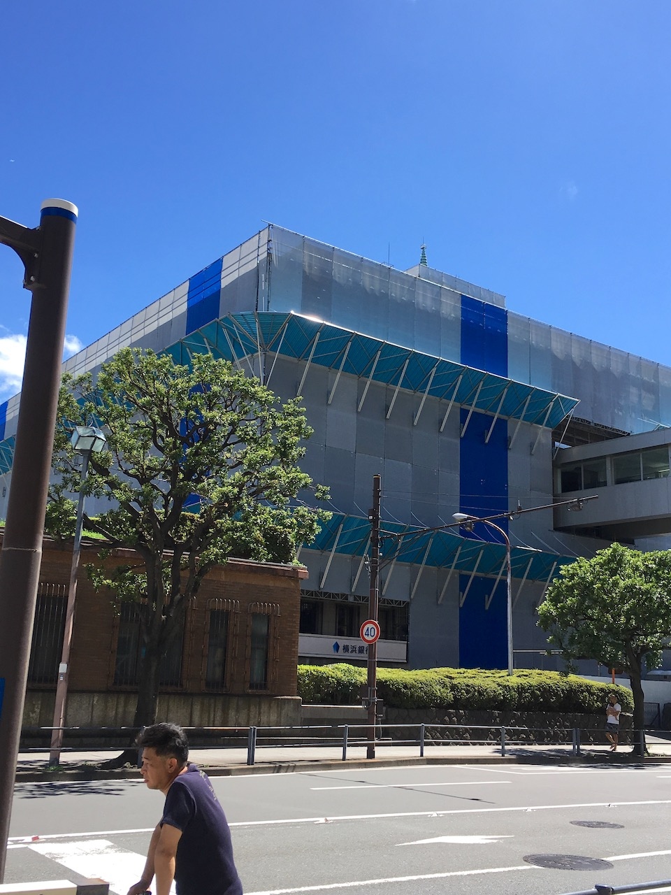 横浜三塔を見にみなとみらい21に来てみると、県庁の建物は工事中でした。