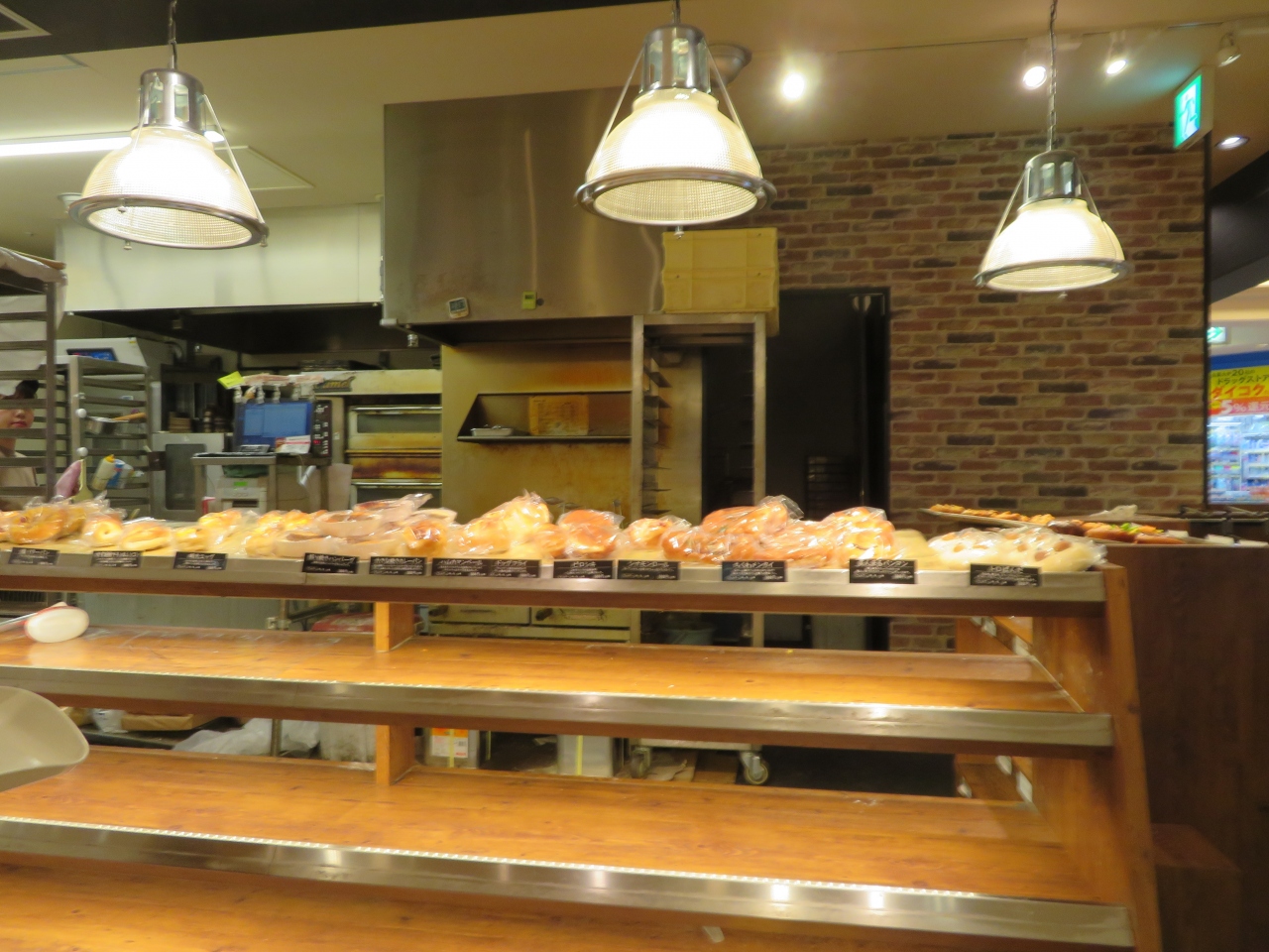 モザイクボックスの1Fのダイコクドラッグの横にあります。100円均一ショップでリーズナブルです。おかずパンは結構具だくさんで価値ある100円だと思います。因みに閉店間際に行っても値段を下げていることはほとんどないです。