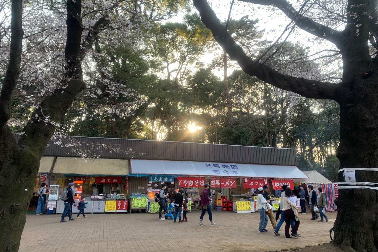 3/21の時点でかなり咲いており、飲食を伴う宴会は出来ませんが、桜を見に来る方は多かったです。常設の飲食店は通常営業です。