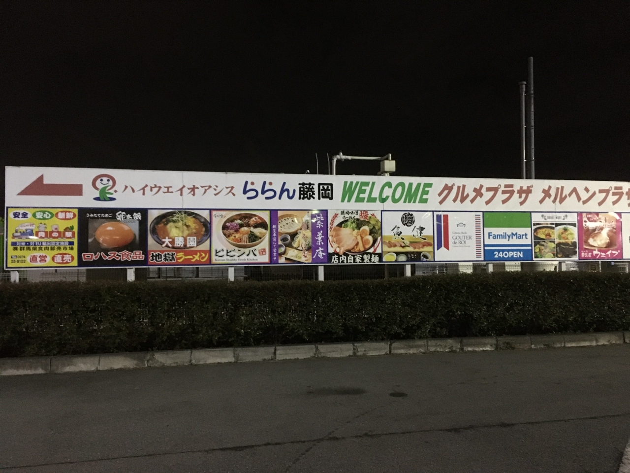群馬県の藤岡 ICの近くにある道の駅で、大きな観覧車もありました。夜7時少し前に訪れたので、農産物直売所などは閉店していましたが、コンビニ(ファミリーマート)もあって便利でした。観光物産館にはお土産の種類も多く、観光案内コーナーには群馬県の有名観光地のパンフレットもたくさんありました。