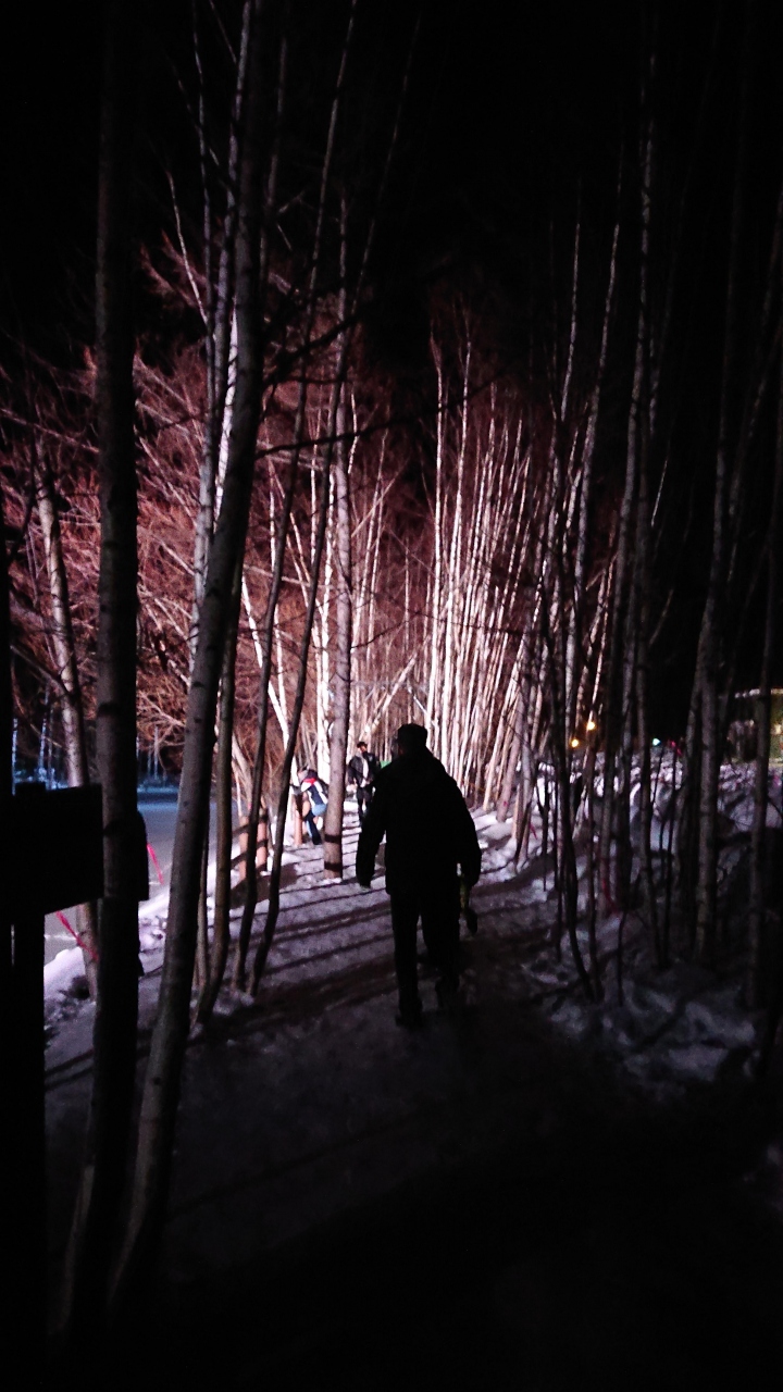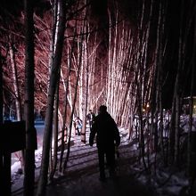 白金温泉に滞在した時に宿の送迎車で行ってきました。冬以外の昼間は何度か行ったことがありますが、冬ははじめて。ライトアップに合わせて雪の降っていない日に行きました。