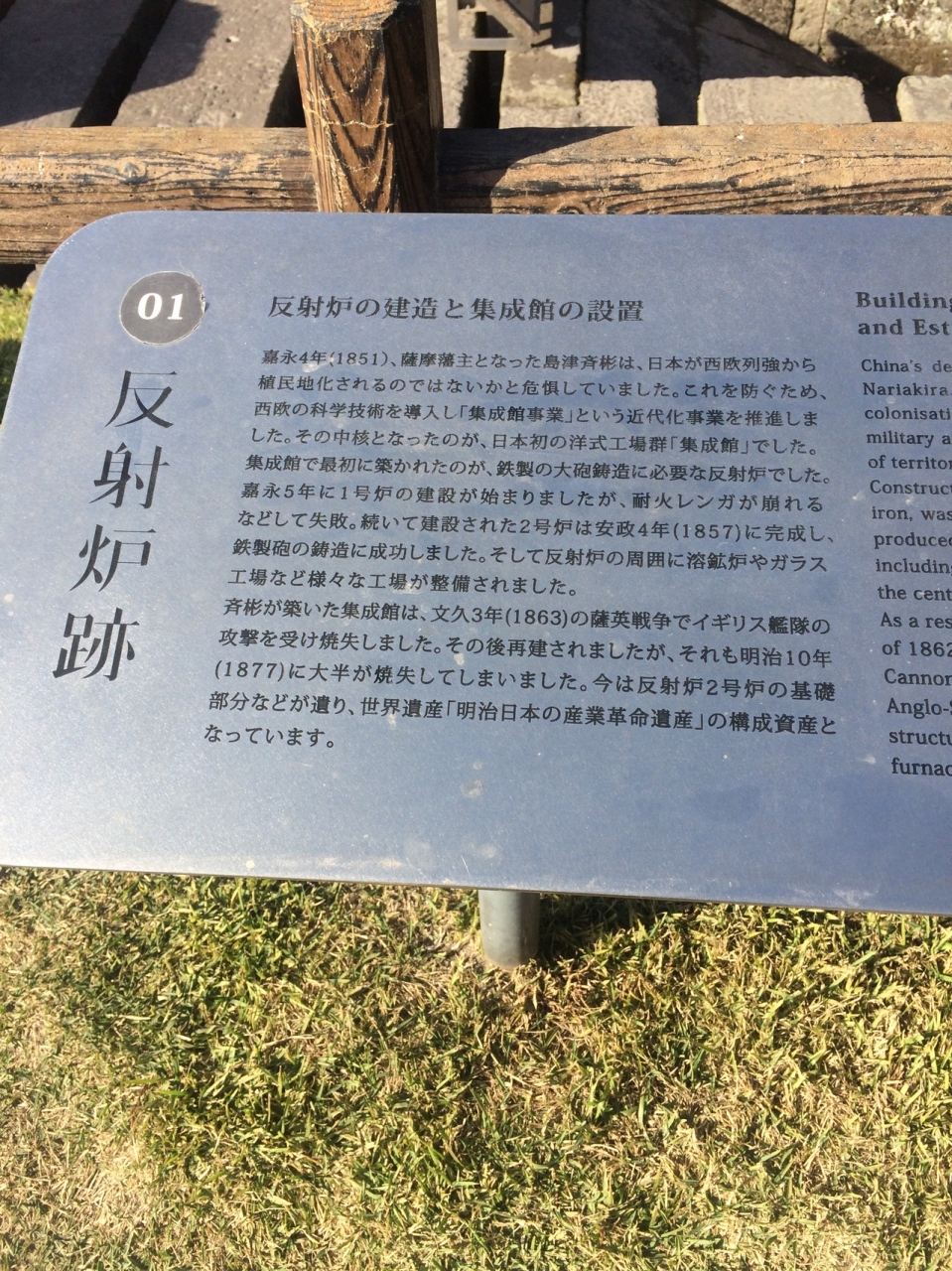 11月に九州一周旅行に行った際に利用しました。世界遺産の仙巌園内にあり、入口を入って一番最初にある見学スポットでした。実際のモノはシンプルというか、見ごたえがありませんが、説明から昔の技術のすごさを感じました。