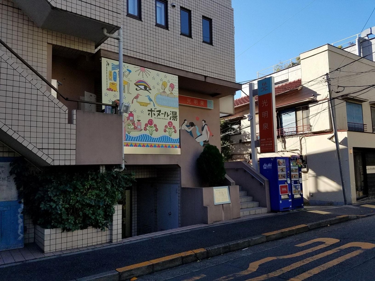 中目黒駅から北に歩いて3分のところにあります。銭湯というと瓦屋根に唐破風があるような和風の建築が思い浮かびますがこちらはマンションのような佇まいで内装も明るい雰囲気です。ちょうどヘアケアブランドとコラボした「ボヌール湯」なるキャンペーンを行っていて色々と新しい試みをされているようです。とはいえ入浴料金は東京都で定められている金額なので安心して利用できます。