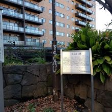 中目黒駅から北に歩いて10分ほど、目切坂を上ったところです。ここにはかつて12メートルの富士塚があって歌川広重の名所江戸百景にも「目黒元不二」として描かれています。現在はマンションの前に案内板がありますが文字だけなのが残念です。広重の浮世絵でもプリントしておけばイメージし易くてもっと親しまれると思います。