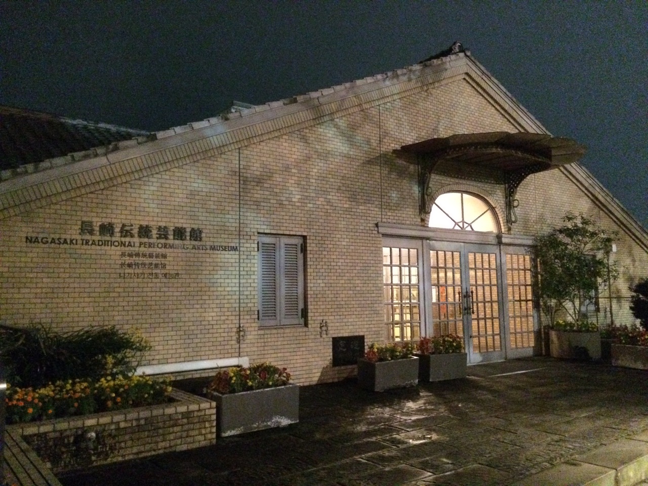 入口の壁が三角形になっていて、新旧が合体したような感じの建物です。世界遺産のグラバー園を見学し終えて、出口に向かう前に必ず通ります。グラバー園内の洋館に比べて、長崎の芸能を扱っているだけあり、日本の気配がしました。