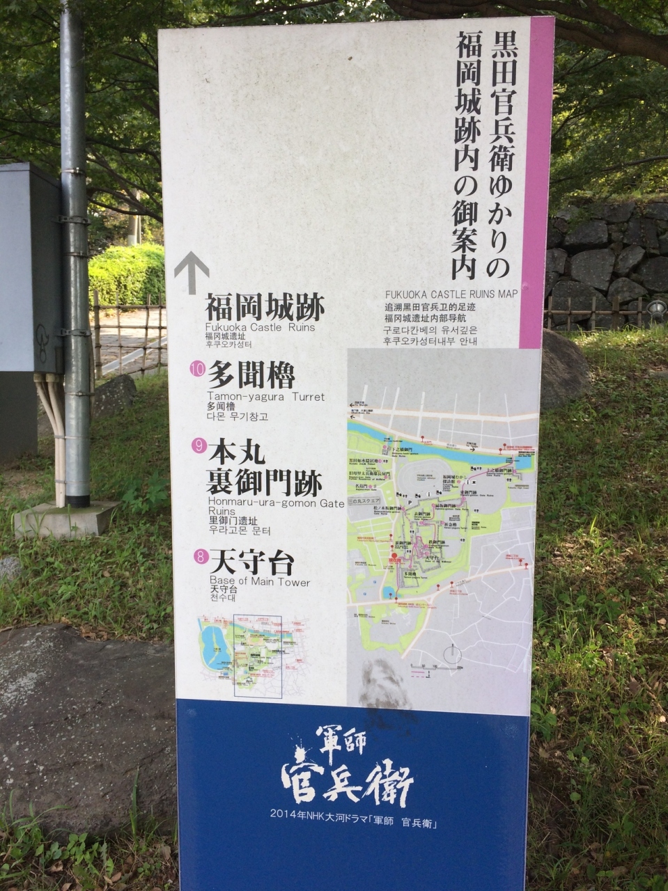 大濠公園駅から徒歩で、大濠公園まで行き、奥のほうに歩いていくと福岡城跡の案内が出てきました。市内にこんな大きな福岡城跡があるのは、楽しかったです。登っていくと、多少高い場所に出るので、市内が見渡せました。でも暑かったです