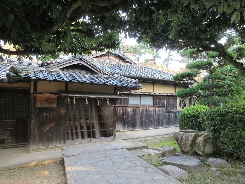 松陰神社の鳥居をくぐり、奥へ進んでいくと「学びの道」に沿った場所に毛利藩の茶室を移築した、この花月楼がありました。訪れる方も少なくひっそりとしていて、残念ながら窓もすべて締め切られていて、内部の見学は出来ませんでした。山口県の指定有形文化財とのことで、外部のみ見学させて頂きました。