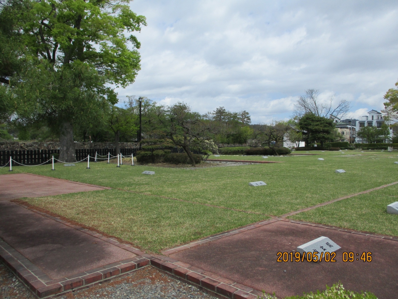 城の東側、太鼓門を入ったあたりに広がっています。太鼓門の上から見ると、空き地か広場のように見えてしまいますが、近寄っていくと、そこにかつての二の丸御殿のどのような部屋があったのか、記されています。松本城の天守を見学した後、市立博物館などとともに訪れてみるのもよいかもしれません。