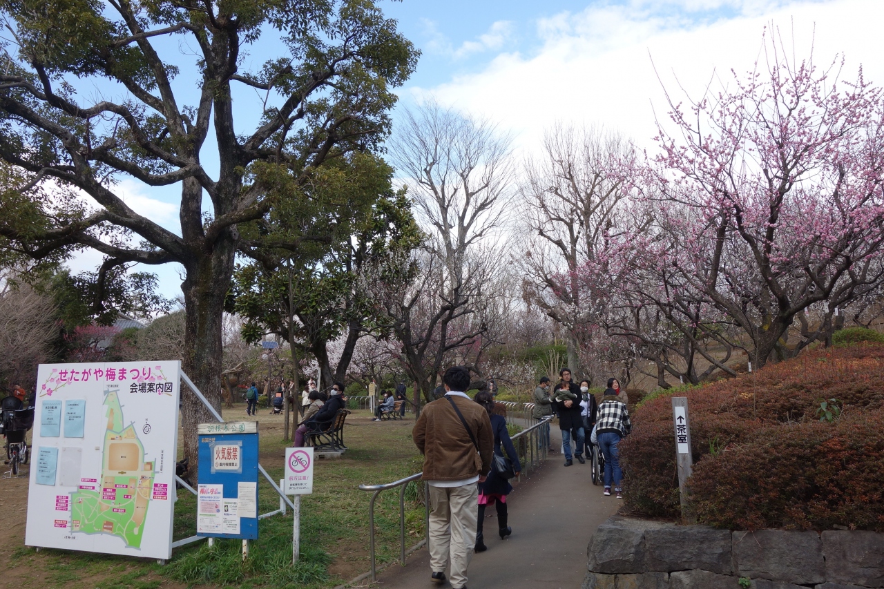 世田谷あたりのエリアを散策中こちらの場所を訪れました。梅ヶ丘駅と東松原駅の間に位置する大きな公園で、立ち寄った日は梅まつり開催中で多くの人が訪れ大変賑わっていました。色々な種類の梅が咲いていて良い香りが漂っていました。