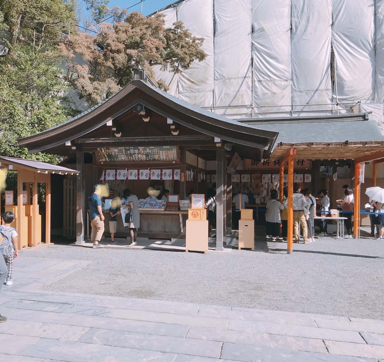 ご祈祷受付とおみくじは行われていました。白い幕で覆われており2016年より始まっていたそうです。耐震補強と修復工事が終わったら当時の色がよみがえると思われるので、次回訪れるのが楽しみです。