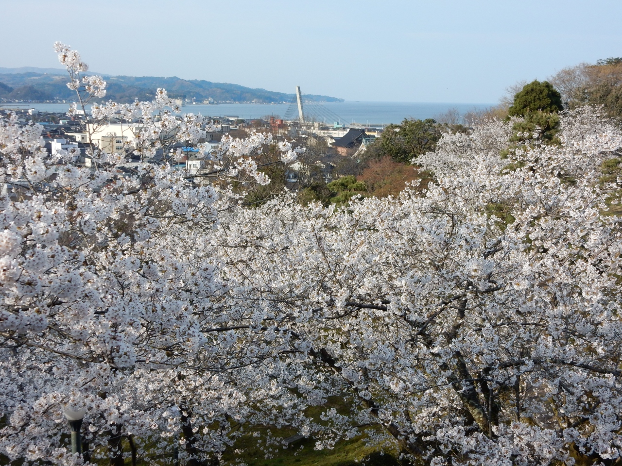 桜の時期だと、満開の桜の向こうに氷見の街や日本海を見渡せます。