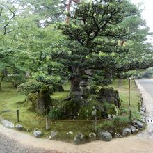 兼六園三要石の一つの龍石の後ろにある椿です。
