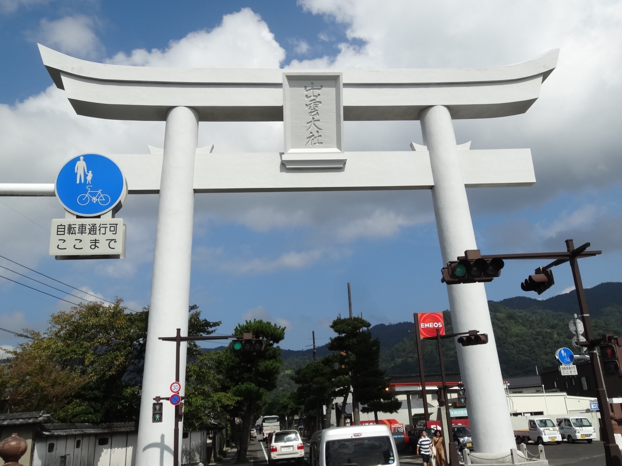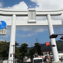 出雲大社にお参りに行く際に最初に目にする大鳥居です。いくつかある鳥居の中でも、観光客は、電車を降りた際にすぐ大社のある右へ進んでしまいがちですが、実は左側に最初の大鳥居があるので、せっかく来たならまずその鳥居からくぐってからおマイルするのがおすすめです。