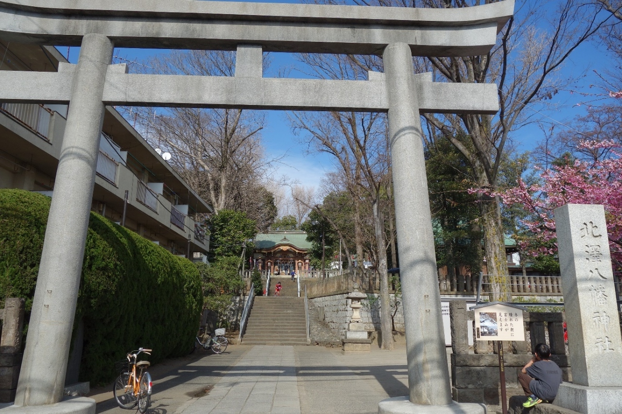 下北沢あたりのエリアを散策した際こちらの神社へ立ち寄りました。駅から南の方向へ少し歩いた閑静な住宅地に位置する静かな神社です。鳥居を抜けて石段を上がって拝殿に向かいました。境内には梅が咲き景色が良くて清々しくお参りできました。