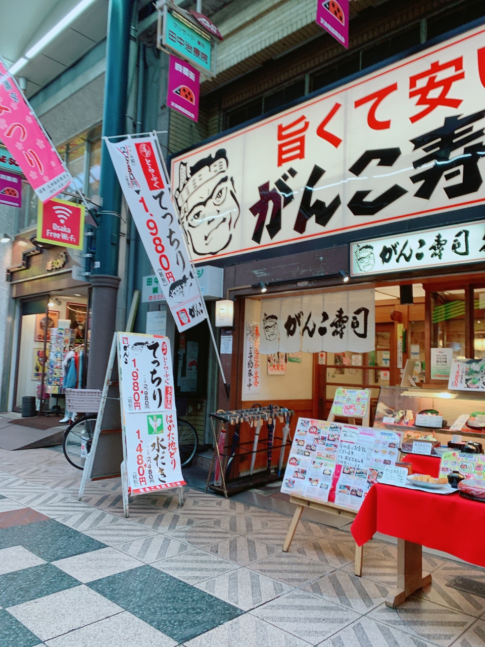 天神橋筋商店街を歩いていて食べる場所を決めることに。ここは和食でおなじみのがんこのお寿司バージョンです。たまにはお寿司もいいかということで行きました。わたしはサラダ巻きしか食べないのでもったいなかったかも。