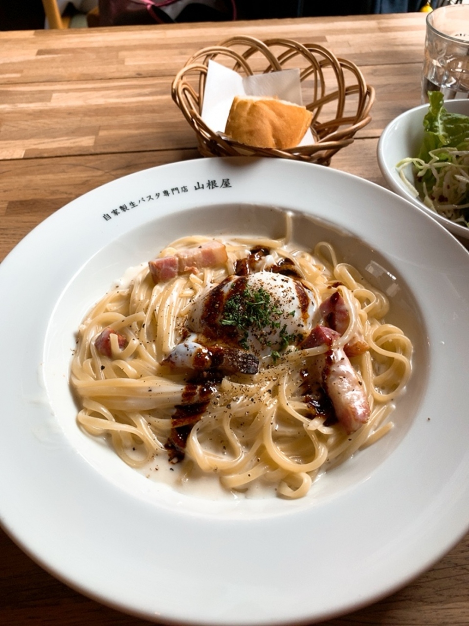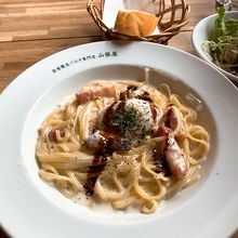 私はパルボナーラを注文しましたが、焦がし醤油がアクセントになって、ちょっと一味違うカルボナーラになっていました。 生パスタのアルデンテ具合もちょうど良くて美味しく頂きました。 もう少し近い場所にあって便利に行けるなら通いたいくらいなんですけどね…。