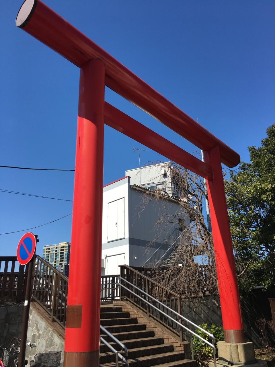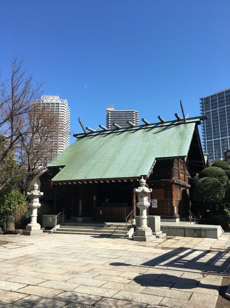 赤い大きな鳥居を潜ると、少し住宅街を通り境内です。右側には大きな鰹塚があり、昔から住吉大社の守護神だったとのこと。グレーの鳥居を潜ると正面には本殿があり、緑の屋根は急勾配でしたが、神さまが本当にいるような社殿でした。