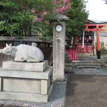境内は天満宮らしく「使いの牛」の像が見れます。
