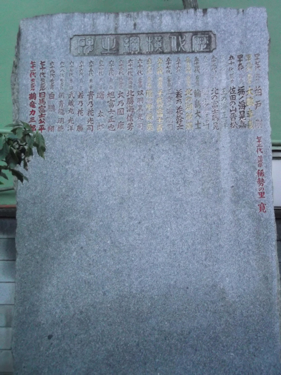 大江戸線両国駅から徒歩5分ほど、野見宿彌神社の中にある歴代横綱の名前を刻んだ石碑です。懐かしい横綱から最近の稀勢の里までそうそうたる横綱の名前が刻まれていて、何か不思議なパワーを感じさせます。次はいつ誰の名前が刻まれるのか楽しみです。