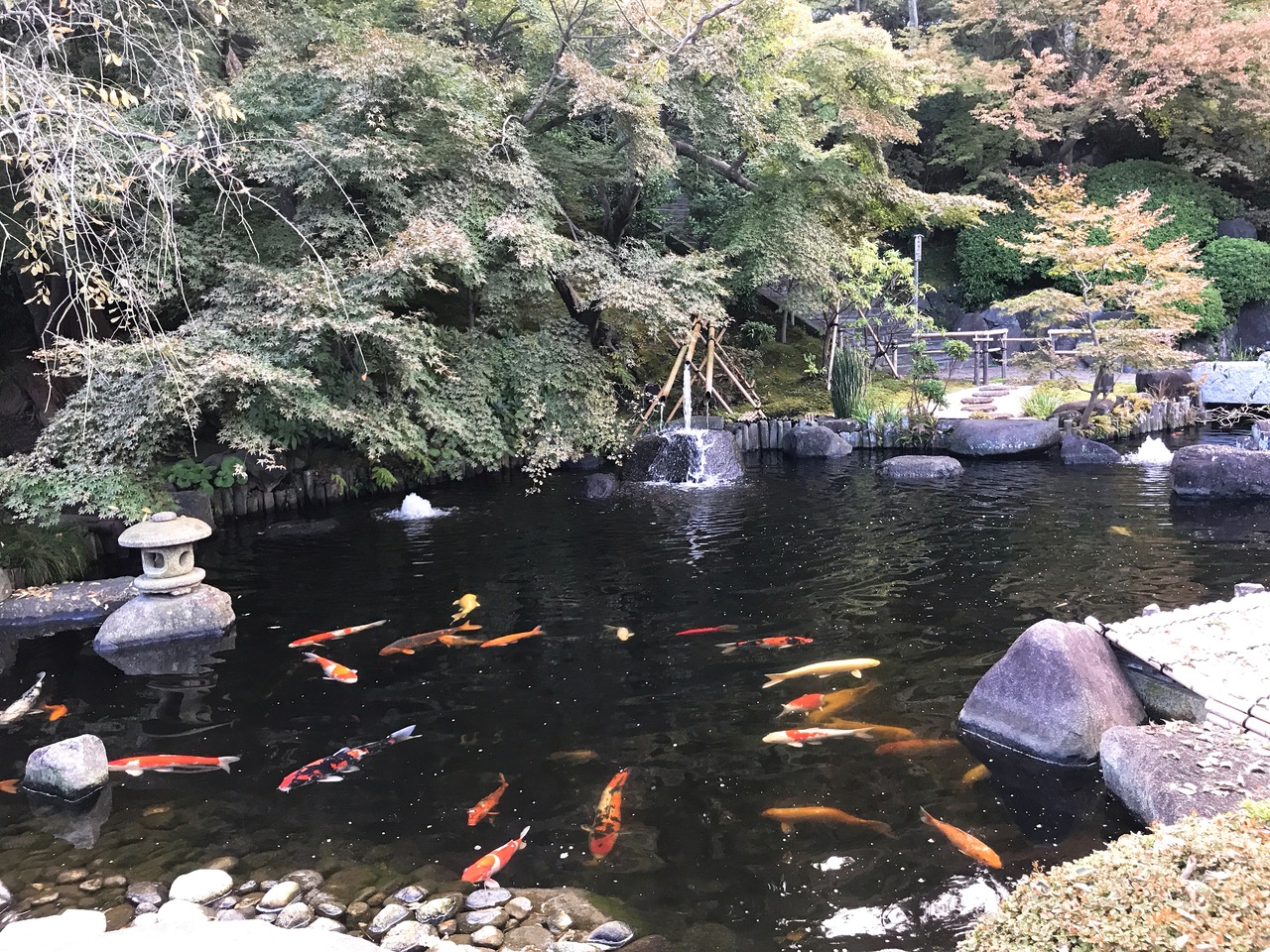 境内の見晴台からは鎌倉の海がみえました。池には鯉が泳いでいて、竹林があったり「輪蔵」や「マニ車」を回転させて徳を得られたり広い敷地にゆったりと歩く事が出来ました。