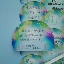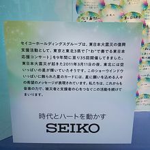 東日本大震災が起きた2011年3月11日の夜、 東北には空いっぱいの星が輝いていたそうです。 このショーウインドウいっぱいに飾られた星のカードには、 星に願いを込める人々の希望のメッセージが表現されています(^^)