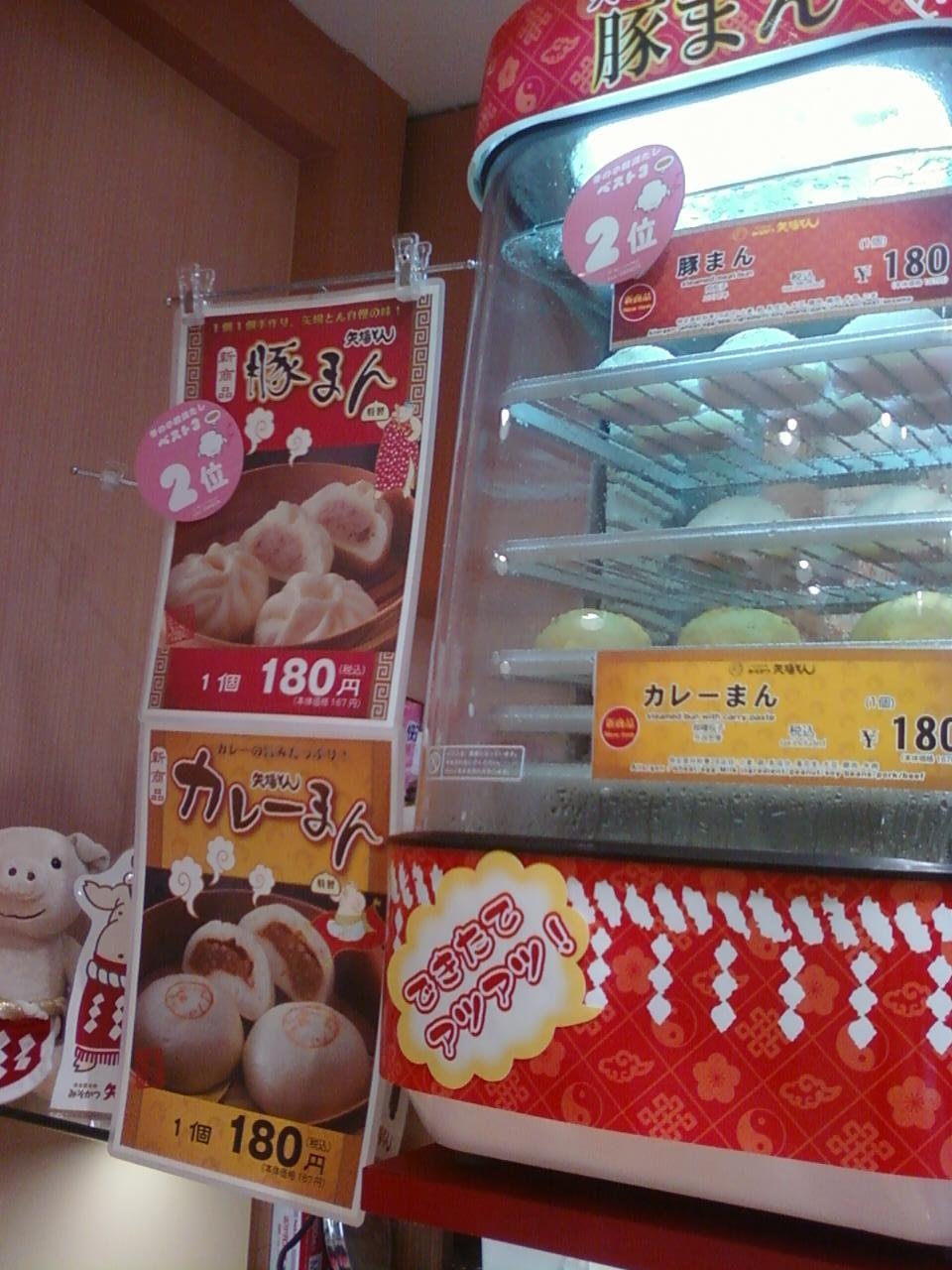 ここの名古屋名物みそかつ矢場とんさんは、東京駅駅構内にある、グランスタという、いくつかのお弁当やお惣菜、お菓子などが並ぶ一角にあります。初めて見ましたが、名古屋の矢場町ということころに本店があるようですね。美味しいみそかつの専門店です。みそかつはもちろんのこと、豚まんなども売っていました。今回は他で揚げ物を買ってしまったので、豚まんをいただきました。