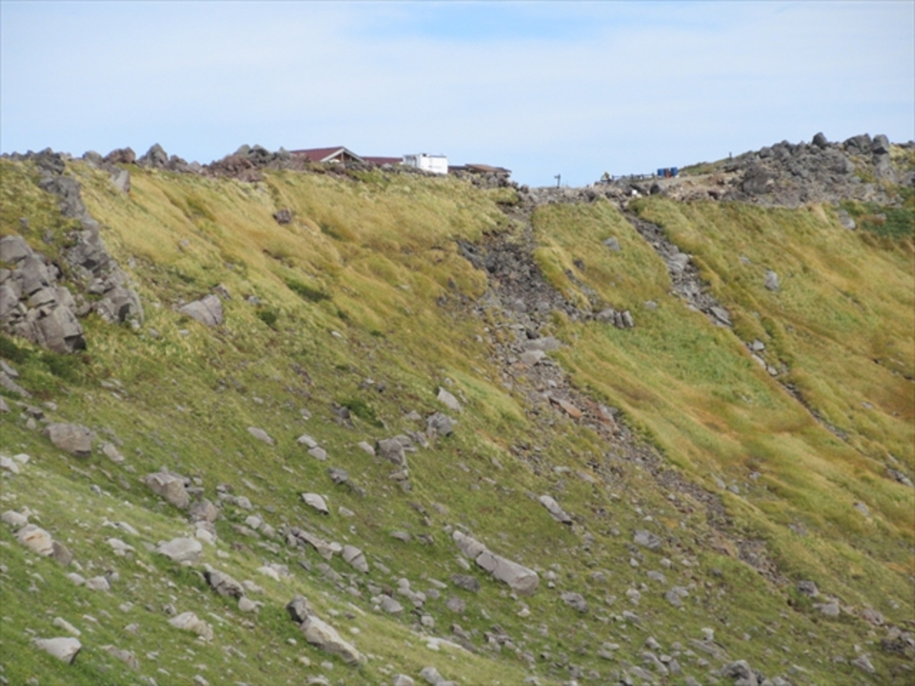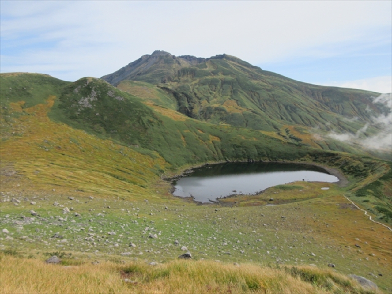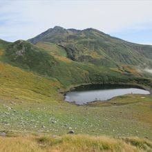 鳥海山には景色の良い場所が沢山ありますが、その中でも常に人気の上位となるのがこの鳥海湖です。湖と言っても雪解け水がカルデラに溜まった池で、川はありません。それでも人気なのは、鳥海湖と鳥海山の頂上とのコントラストがとても美しいからで、パンフレットにもこの構図が良く使われています。近くには山小屋もあるので、登山客の多くがここで小休止をしています。