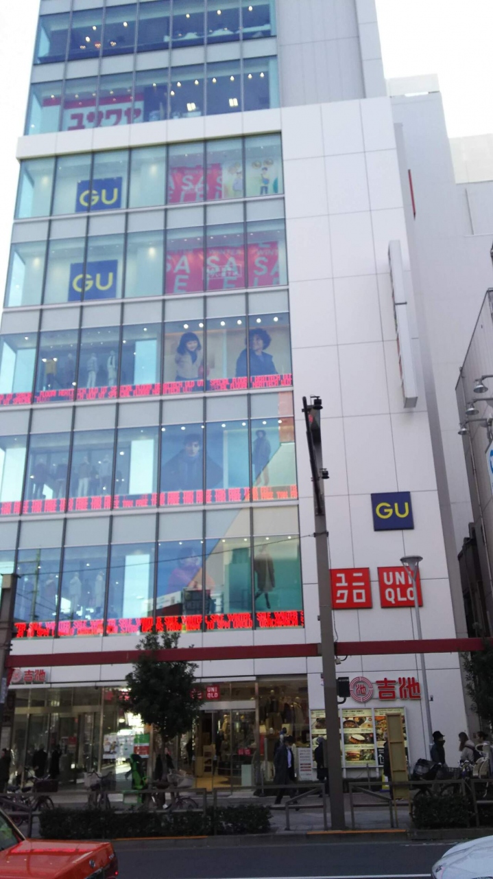 御徒町の駅前にあるビルで、地下2階~1階に食料品のスーパーマーケットの吉池が出店されています。1階~4階にユニクロ御徒町店、そして5階と6階にジーユー御徒町店、7階に手芸用品のユザワヤ、8階にレストラン街、9階に吉池食堂があります。
