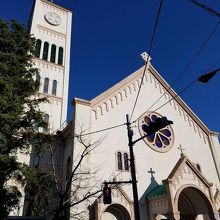 碑文谷八幡宮の一の鳥居から北にその名もサレジオ通りを歩くとありました。正しくはカトリック碑文谷教会と言いサレジオはイタリア発祥の修道会だそうです。高い塔もあり、明るい色の外観も清々しいですが中に入ると一面に広がるステンドグラスと天井の模様に圧倒されました。是非、建物内部も見てみて下さい。