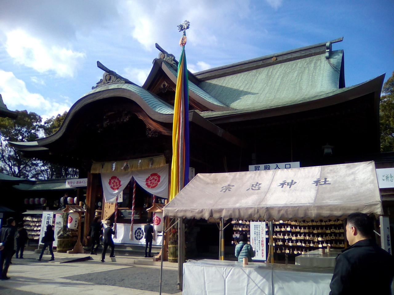 黒住教の教祖・黒住宗忠を祭る神社。地名にちなんで大元神社とも呼ばれる。自動車での便が良い市街地にあり、駐車場も境内にある。行事が盛んな神社で、初詣、節分、七五三、秋のチャリティーバザーなどには多くの人が繰り出す。三が日をあけてから初もうでに参拝したが、通常の参拝客に加え、企業のおはらいで多くの社会人が来訪しており、境内は大にぎわいだった。