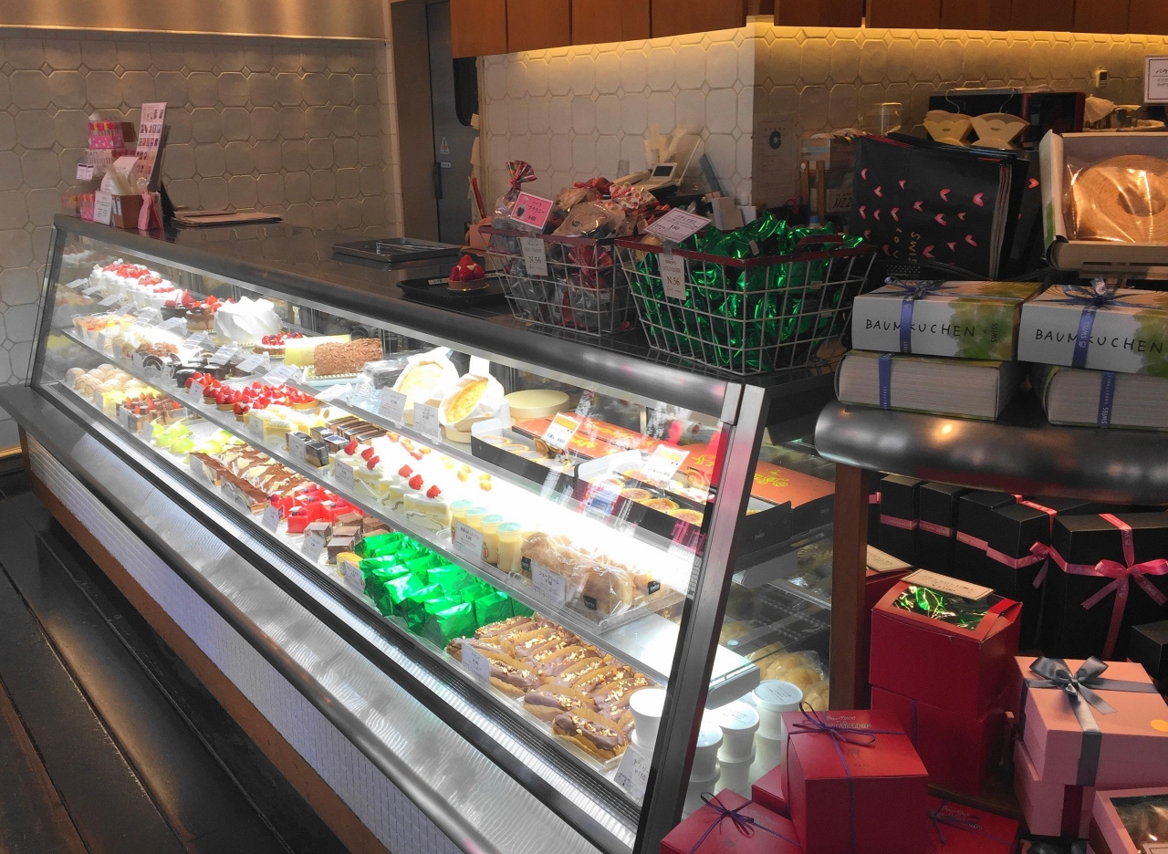 ショーケースにはケーキや焼菓子・チョコが並びます。