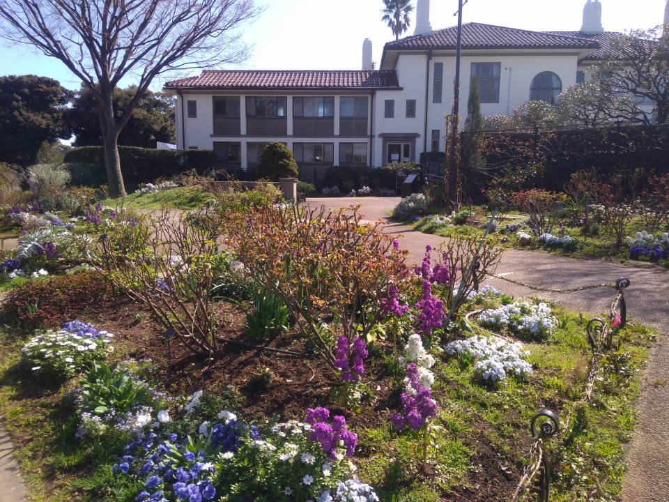 港の見える丘公園をさらに奥に進むと「横浜市イギリス館」がありました。入館無料で入れるようでしたが今日は新型コロナの影響で一時休館中でした。イギリス館の前にイングリッシュローズの庭という庭園があって綺麗に花が咲いていました。