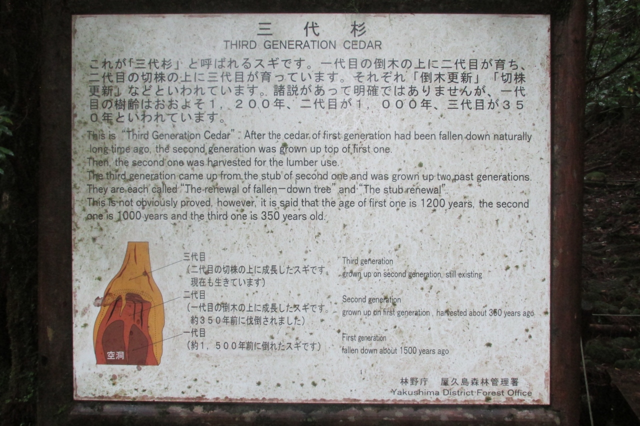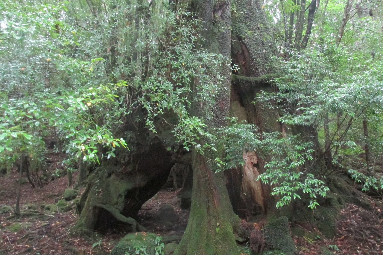 トロッコ道沿いにある小杉です。樹齢3千数百年。初代が2000年、倒れて更新した2代目が1000年、3代目が数百年と気が遠くなりそうです。根元が空洞になっていて動物の雨宿りを想像してしまいました。子供だったら潜ってみたかったです。