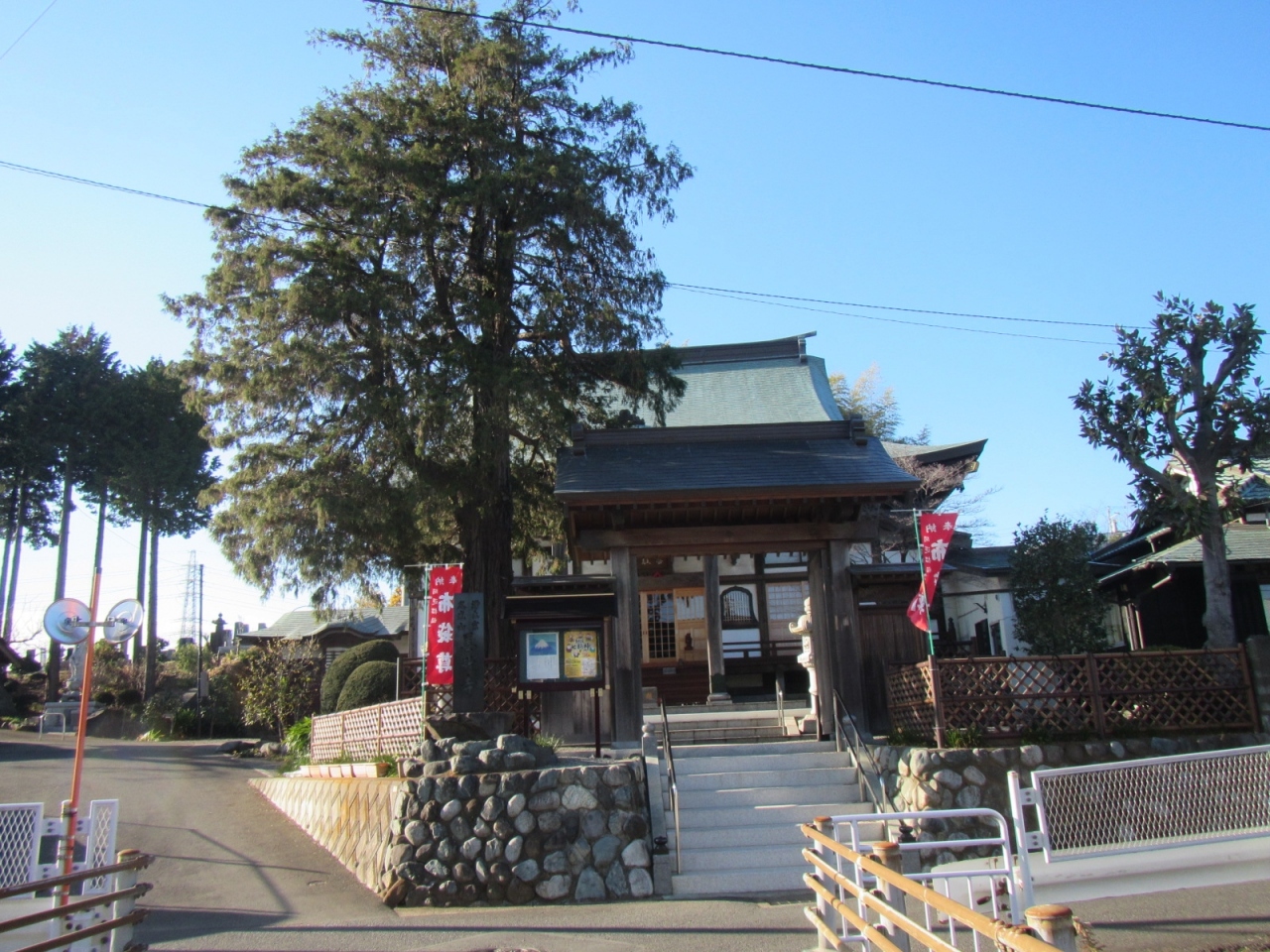 豊受大神の正面の参道の道路をやや下りながら、150mほど進んだところにあり、寺内には子授かり観音や、合格必勝祈願のお寺だそうですが、元日に訪れた時は、豊受大神の方が初詣客で賑わっていた一方、善教寺の方は閑散としていました。