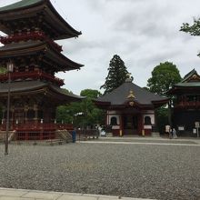成田山の中にある塔です。周辺を柵で囲まれているので上ることはできず眺めるだけとなってます。多くの人がイメージする浅草の五重塔と比べると多少低いですが、赤が目立ち浅草とはまた違った魅力があります。色合いがいいと思いました。