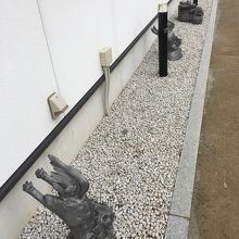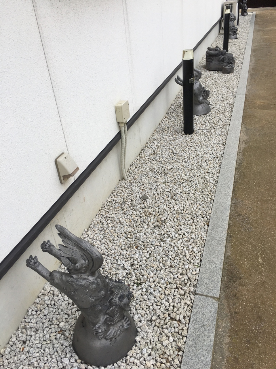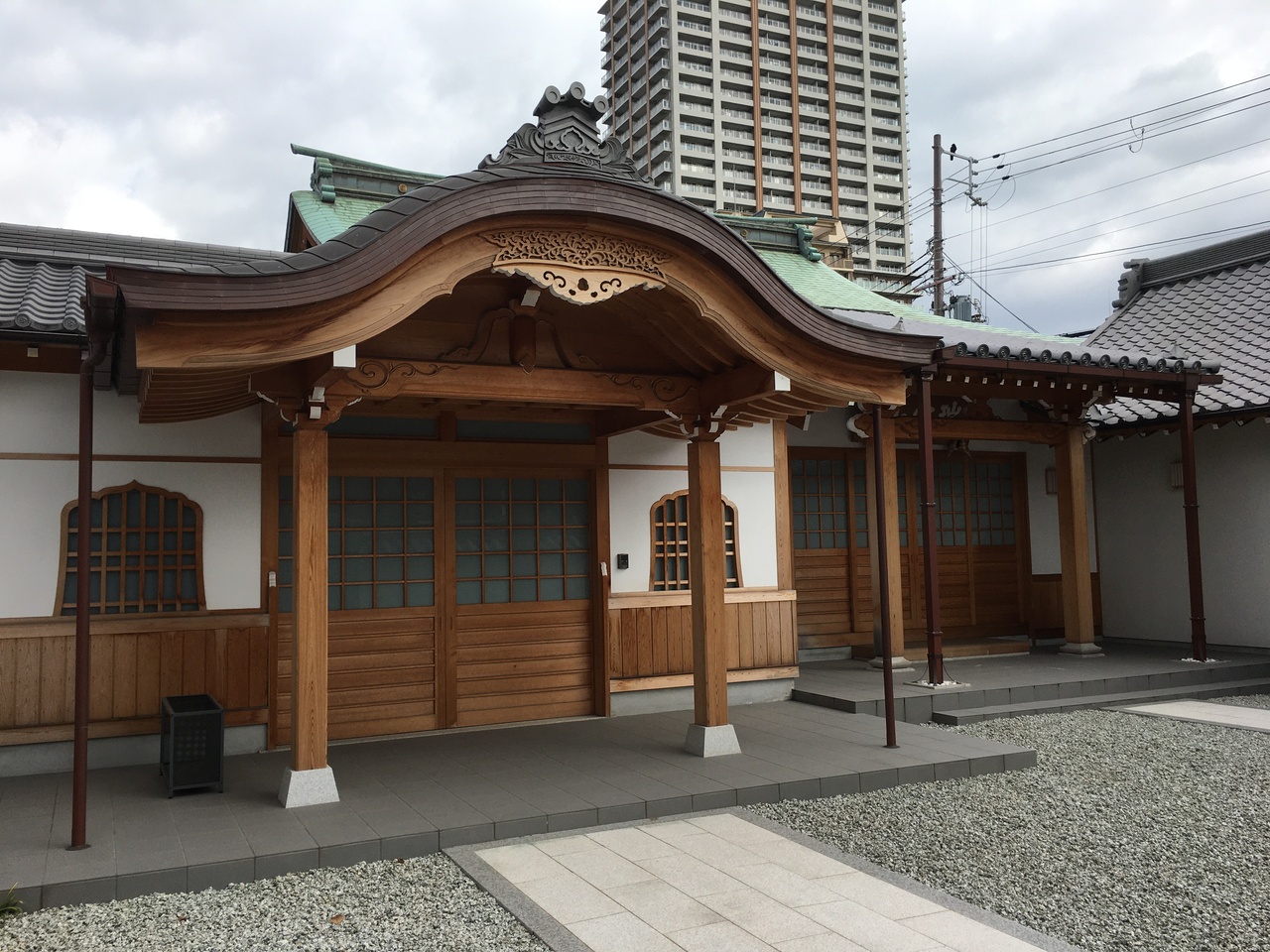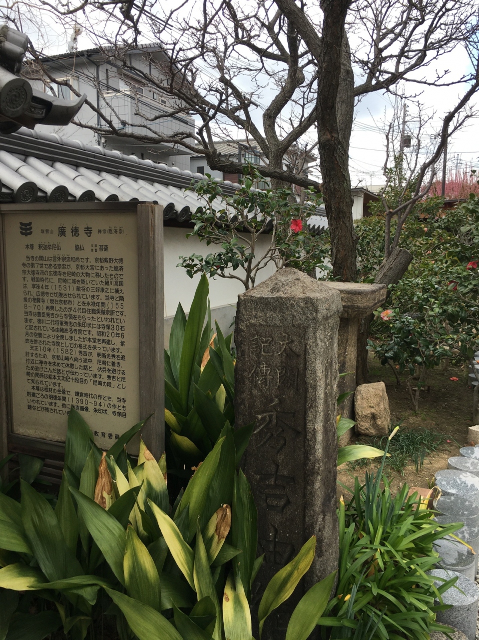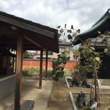 山門の屋根も、山門に繋がった塀にも瓦屋根があり綺麗な寺でした。境内には木々が綺麗に植えられていて、椿の赤い花が良い感じで咲いていました。奥に行くと地面にもデザインされた瓦屋根があり、展示しているような雰囲気でした。