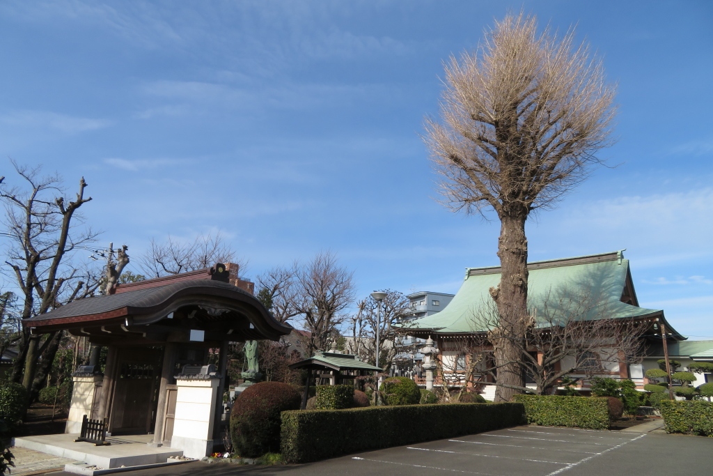 このお寺の大きな特徴は、遠くからでも目立ちそうな、イチョウの巨木。訪問時は寒々しい状態でしたが、色づいた頃に再訪してみてみたいです。